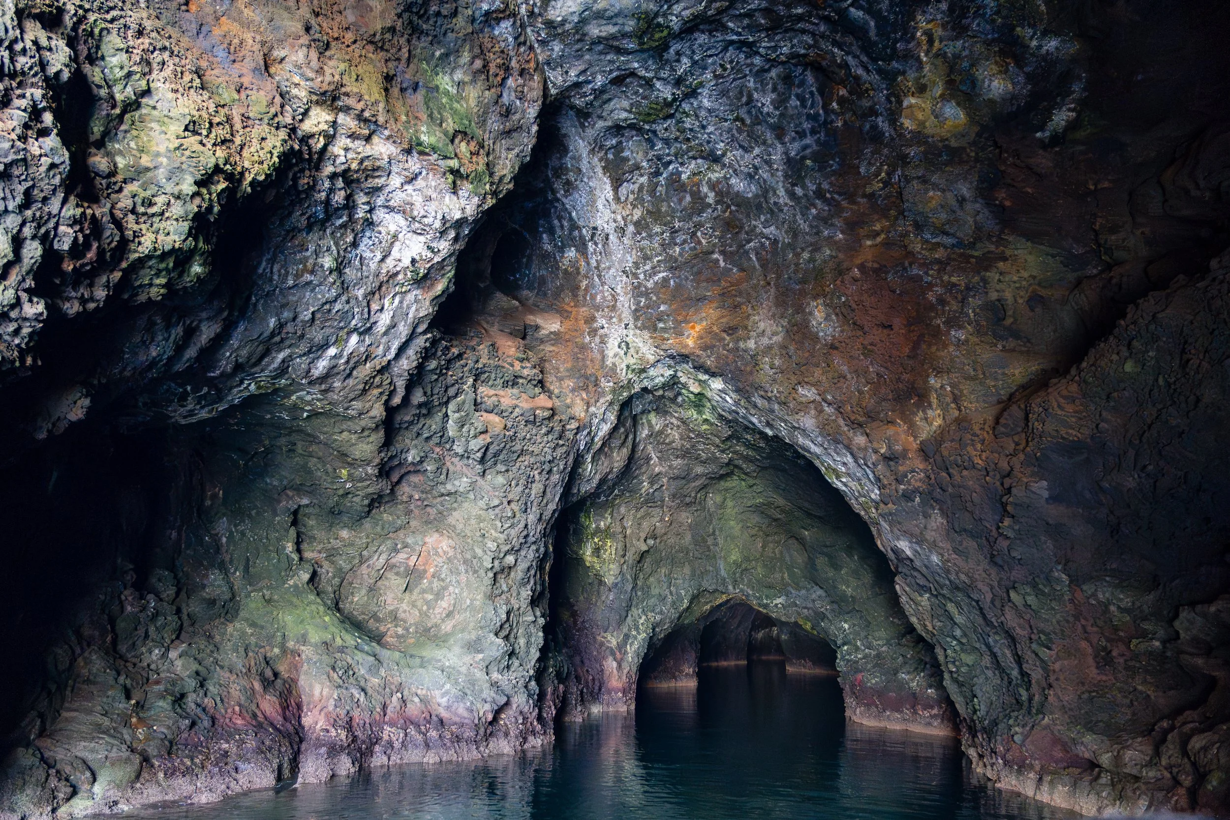 Inside, rock walls glowed with unexpected color - pinks, greens, reds, and browns in stunning layers. The water turned a deep, almost inky turquoise. Sound bounced in strange ways, every splash echoing.